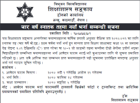 लतिनाथ क्याम्पस मार्मा, दार्चुला मार्माली जनताहरूको व्यापक जनसहभागिताबाट मिति २०६९ सालमा स्थापित मुनाफा रहित सामुदायिक क्याम्पस हो । त्रि.वि. बाट सबन्धन प्राप्त यस क्याम्पसल शिक्षा शास्त्र संकाय, अन्तर्गतको वि. एड. कार्यक्रम संचालन गर्दै छ । विगत १२ वर्ष यता शिक्षाको गुणस्तर कायम राख्य सयको संख्यामा योग्य जनशक्ति उत्पादन गर्न सफल यस क्याम्पसले गुणस्तरियतालाई सुनिश्चित गर्दै अगामी दिनहरुमा पनि समय सुहाउदो सैनिक वातावरण दिने प्रतिवद्धता व्यक्त गर्दछु ।...
