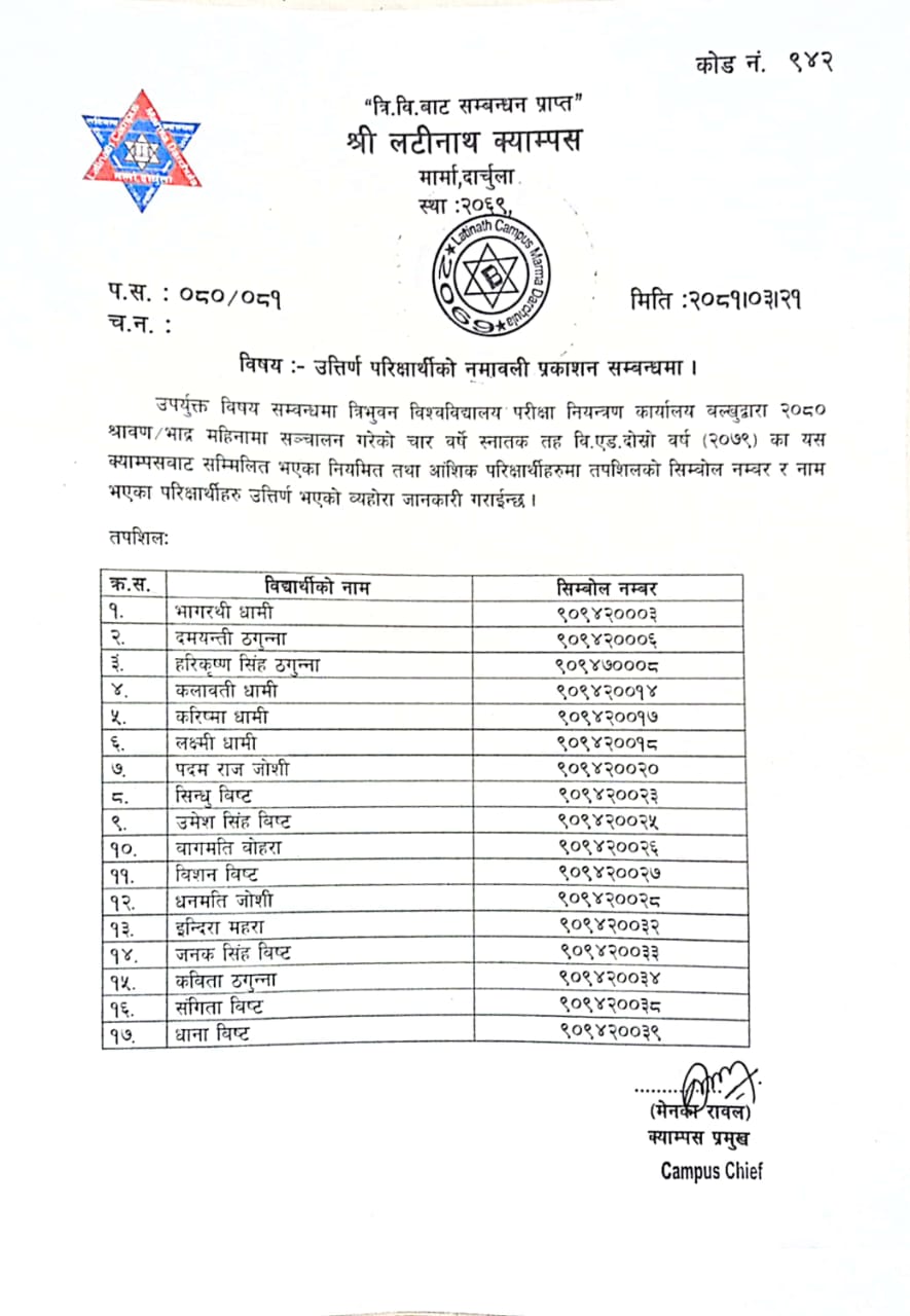 B.Ed Second Year 2079 Batch Result Published